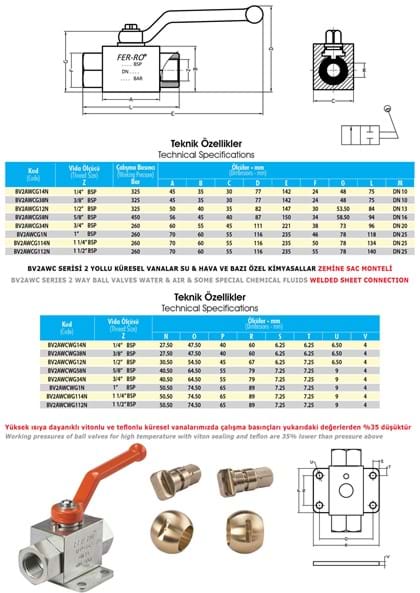 BVAWC Series 2 Way Ball Valves (Water & Air & Some Special Chemical applications) are used to either shut-off or open of flow passage and their easy operation provides unrestricted flow. Due to their volumetric structure they work rapidly and efficiently, and prevent cavitation.