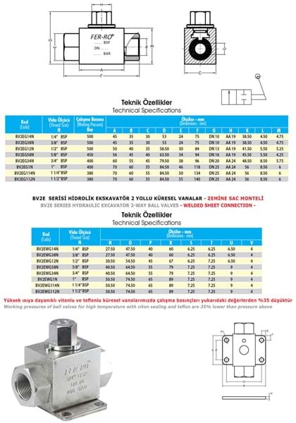 BV2E Series Hydraulic Excavator 2-Way Ball Valves are used to either shut-off or open of flow passage and their easy operation provides unrestricted flow. Due to their volumetric structure they work rapidly and efficiently, and prevent cavitation.