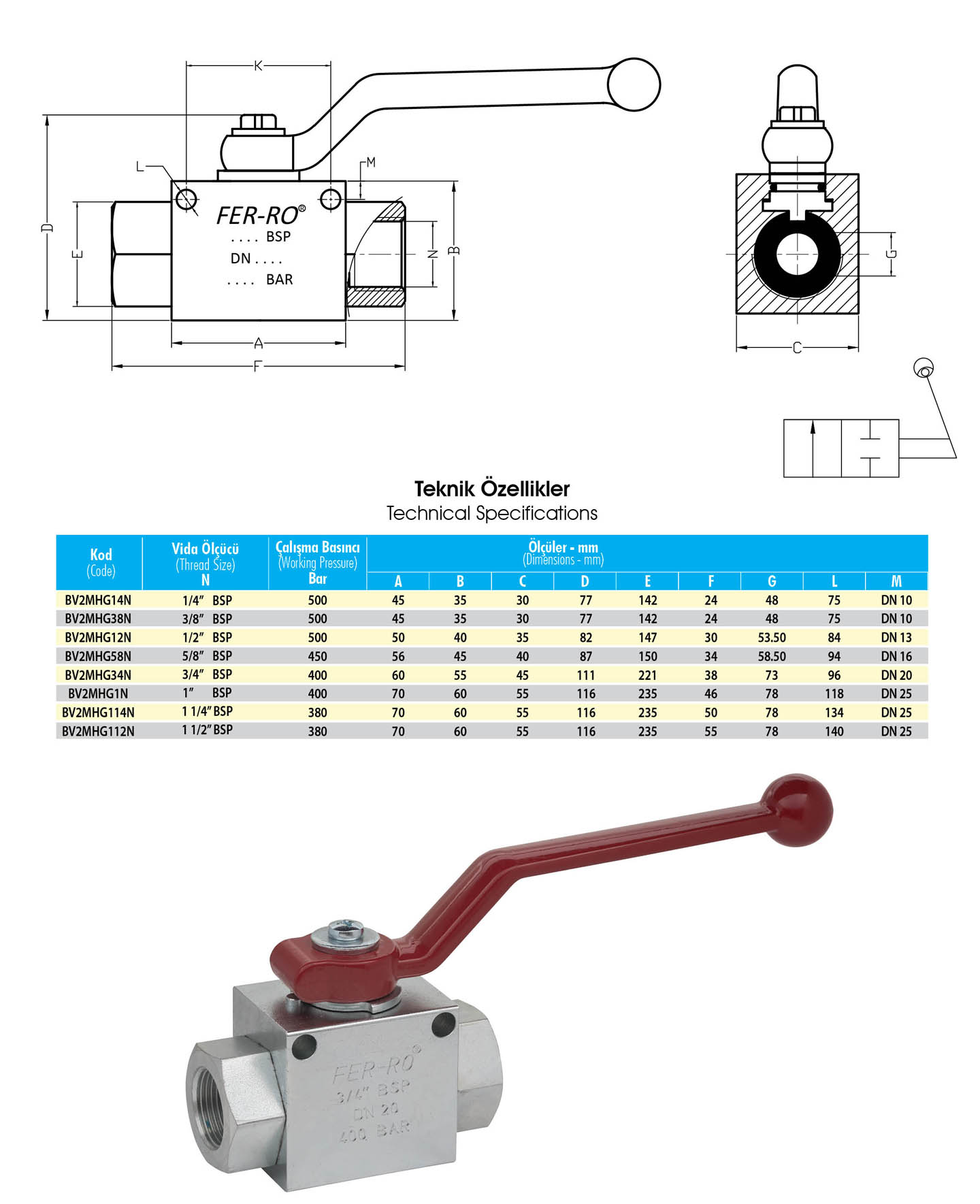 BV2MH Series Hydraulic 2 Way Ball Valves (With Mounting Holes) are used to either shut-off or open of flow passage and their easy operation provides unrestricted flow. Due to their volumetric structure they work rapidly and efficiently, and prevent cavitation.