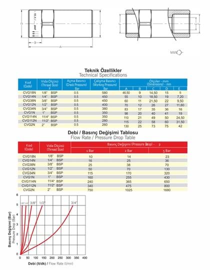 | Opening Pressure | 0,5 Bar (6-8 Bar opening pressure is optional, open request) |