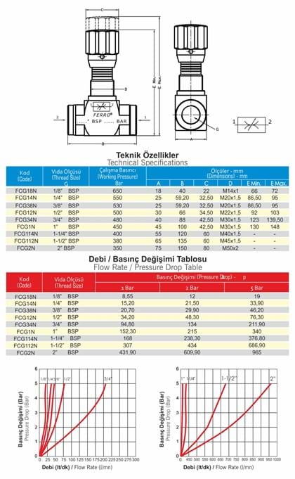 FC Series Hydraulic Flow Control Valves allow shut-off and the adjustment of the flow in both directions. They provide reliable and easy control of fluid by means of the control knob allows adjustment.