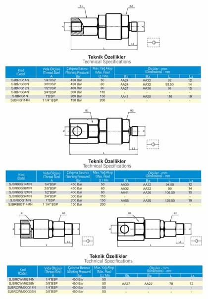 SJBR Series Hydraulic Brass Swivel Joints are not suitable for fast and permanent rotations. They are suitable for slow rotations and high pressure applications.