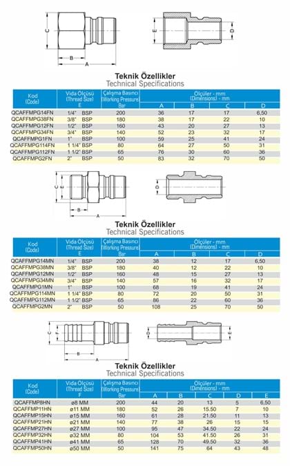Uç malzemesi alüminyum olan QCAFFMP serisi Endüstriyel Çok Amaçlı Kullanım Otomatik Rekorlar başta su olmak üzere birçok kimyasal sıvının geçebilmesine olanak vermektedir.