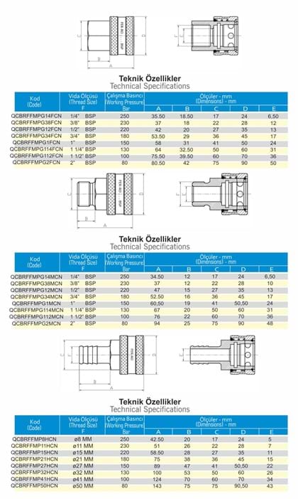 QCBRFFMP Series Industrial Multi Purpose Quick Couplings are made of brass material and allow the pass of water and other many kind of chemical liquids.