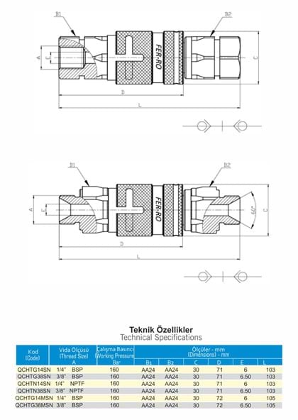 QCHT series Fer-ro Quick Couplings made of high-quality aluminium material for high-tech products allow to pass all kinds of chemical liquids especially water.