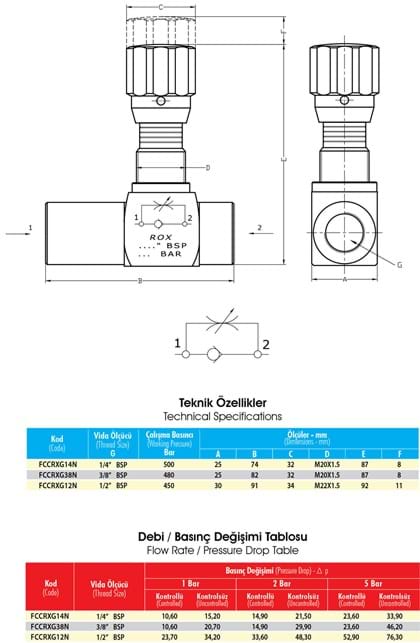 FCCRX Serisi Çekli Hız Ayar Valfleri, akışkan hızının her iki yönde ayarlanmasını sağlayan valf türüdür. Hız Ayar Valfleri, ayar yapmaya yarayan kontrol kapağı yardımıyla akışkanın güvenli ve hızlı kontrolünü sağlar.
