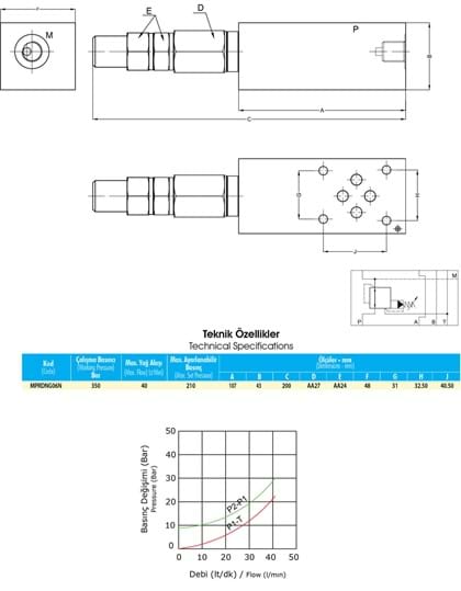 NG06 Modüler Tip Basınç Düşürücü Valf (Kartriç Tip) ana pompa hattına bağlı alt hattın daha düşük basınçta çalışmasını sağlar. Bu valfler pilot uyarılı çalışma sistemine sahiptirler.