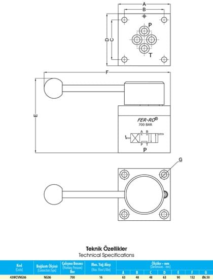 43WCVNG06 Serisi 700 Bar Hidrolik Yüksek Basınç Yön Kontrol Valfleri (4 Yollu 3 Konumlu) (NG06 Bağlantılı) hidrolik yağın yönünü kontrol eden devre elemanlarıdır. Bir hattın başka bir hatta bağlanmasına yardımcı olmaktadır. Yön kontrol valfi orta konum açık merkez tasarlanmıştır.