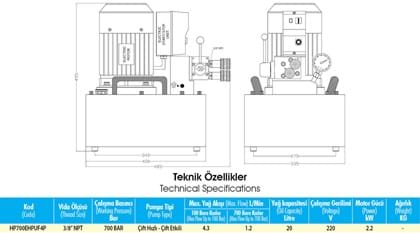HP700EHP Serisi 700 Bar Elektrikli Yüksek Basınç Güç Ünitesi -Manuel Taşınabilir- radyal pistonlu çift hızlı pompa çift ve tek etkili kullanım seçeneği sunmaktadır. Üzerinde bulunan basınç emniyet sayesinde maximum güvenlik sağlamaktadır. 0-700 bar basınç ayarı yapılabilen bir elektrikli güç ünitesidir. Elektrikli güç üniteleri mobil hidrolik uygulamalarında ve özellikle deprem, diğer doğal afetler ve arama kurtarma görevlerinde kullanılabilir. Köprü, baraj inşaatlarında, madenlerde ve mermer ocaklarında, iş makinası bakım ve onarımında, tren ve demiryolları bakım onarımında, gemi tersanelerinde, iş makinası bakım ve onarımında, fabrika içi bakım onarım faaliyetlerinde, yüksek teknolojik makine kurulumlarında ve makinaların hassas teraziye alınması gibi birçok alanda kullanılabilirler.