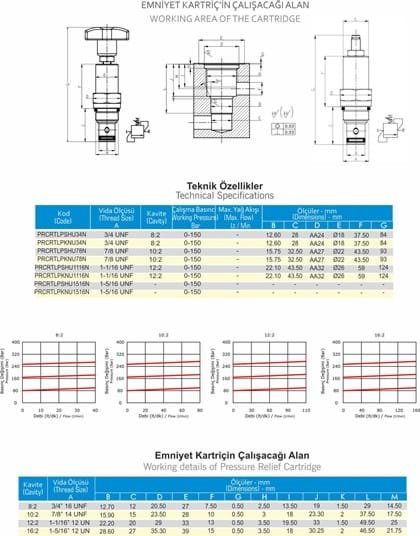 PRCRT Serisi Hidrolik Metrik Direkt Emniyet Kartriç Valfleri, hidrolik devrelerdeki basıncı sınırlamak amacıyla kullanılırlar.