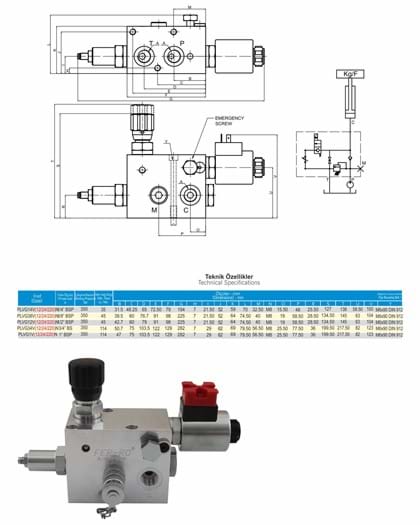PLV Serisi Hidrolik Platform (Asansör) Valfleri 12V-24V-220V olarak 3 farklı tip bobin kullanımı için uygundur. Hidrolik asansör valfleri üzerinde bulunan çekvalften geçen yağ pistonun ulaşması gereken yere ulaştığında pompa basma işlemi biter. Aşağı iniş için pompanın çalışması işlemi gerçekleşmeden üzerinde kendi yükü ile selenoid popet valfin açılması sonucunda aşağı inme işleminde hız ayar valfinden geçmesi sonucunda istenilen hızın ayarlanması ile aşağı yöne doğru hareket eder. Pompa hattında bulunan basınç emniyet yardımıyla devrede oluşacak aşırı basınç yükselmelerine ve istenmeyen basınç durumlarında ayarlanabilir basınç emniyet sayesinde istenmeyen basınç tanka tahliyesi gerçekleşir.