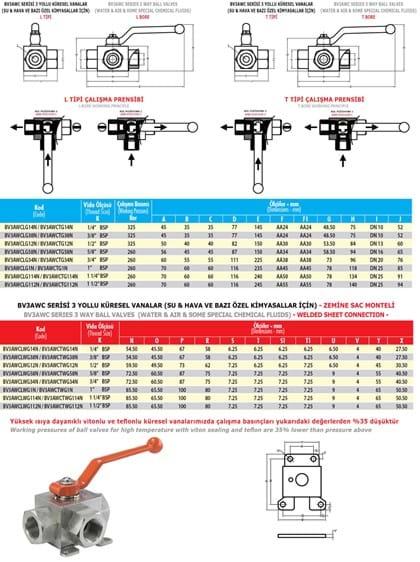 BV3AWC Serisi 3 yollu küresel vanalarda (su & hava ve bazı özel kimyasallar)su ve hava hatlarında, bazı özel kimyasal akışkanların geçişinde kullanılırlar.
